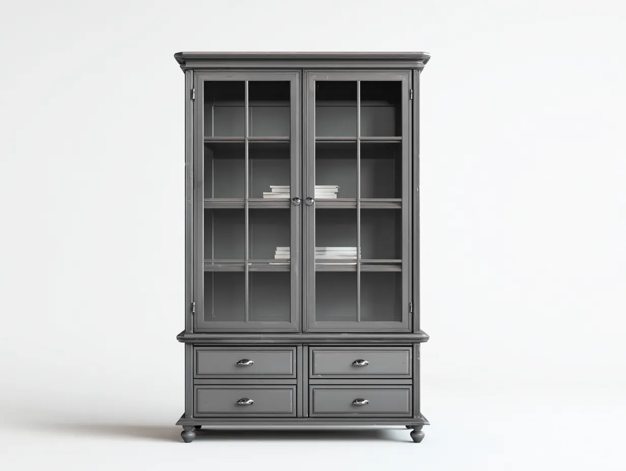 Bücherschrank-Holz-Glas-120x45x198 cm-Grau-Klassischer Stil